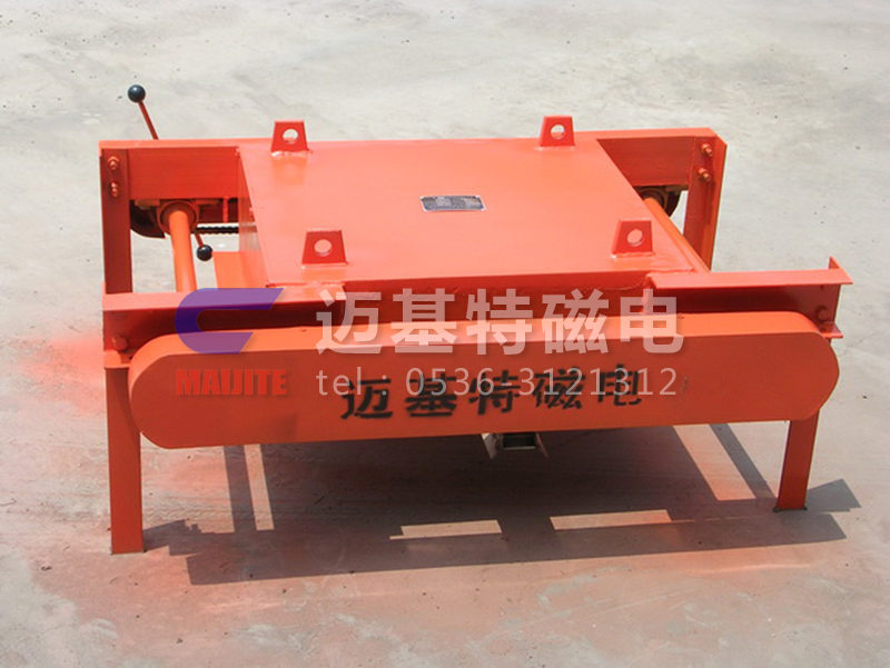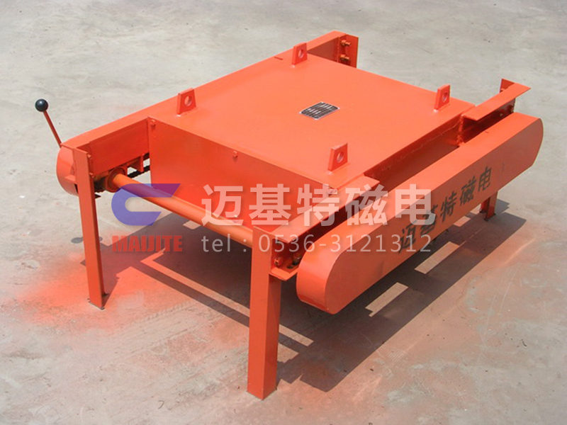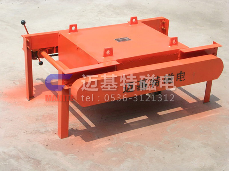 RCYP系列手動缷鐵式永磁除鐵器是采用高性能強磁材料作勵磁的永磁除鐵器基礎上增添了鏈條、刮板、 手柄等缷鐵裝置,通過手搖作動力帶動鏈條上刮板將吸附在除鐵器上的鐵磁性物質刮出,這樣省去了人工用手清理鐵塊的麻煩。產(chǎn)品具有磁場強、吸力大、無需電能、安裝使用方便等特點。